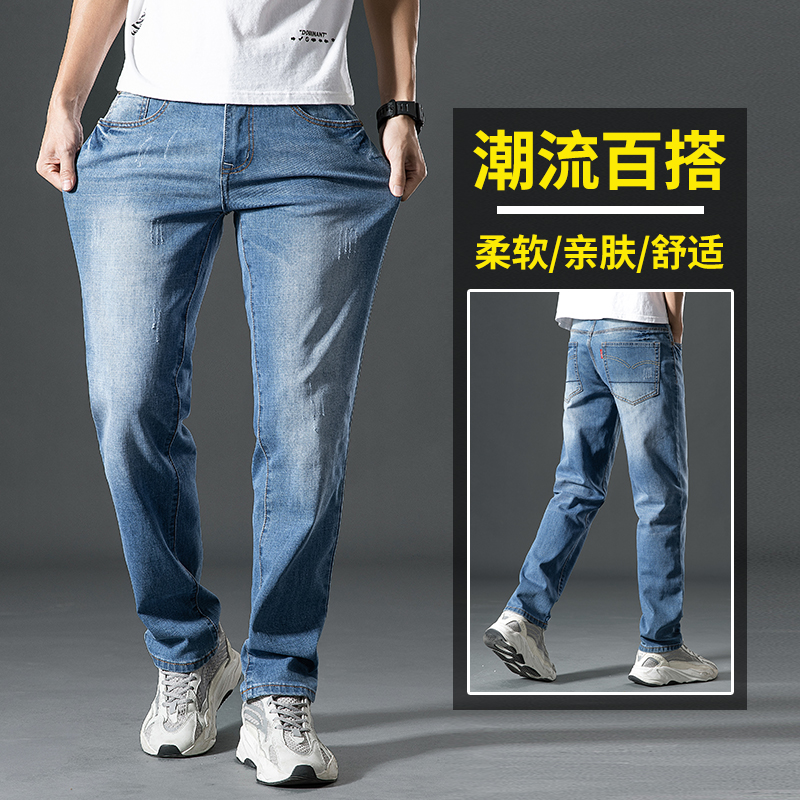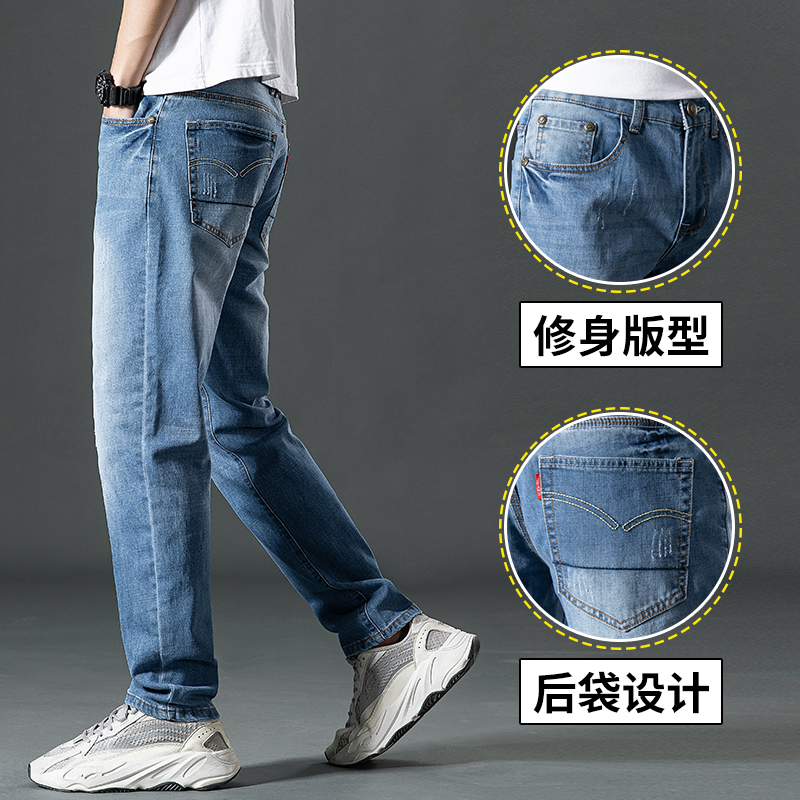 Stretch jeans men's straight loose men's pants trend Korean version of wild pants men's autumn and winter casual pants men