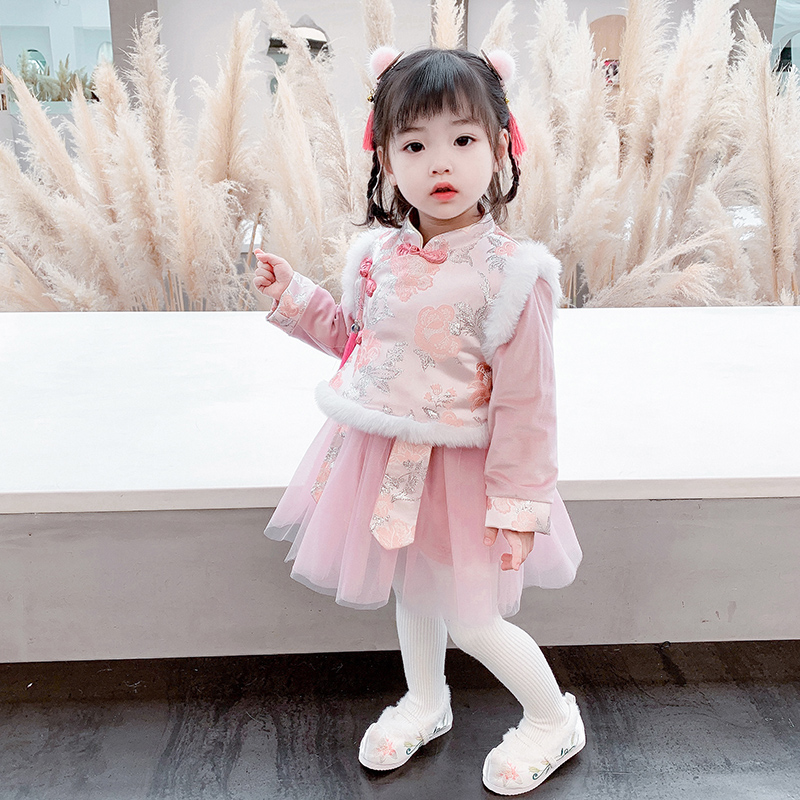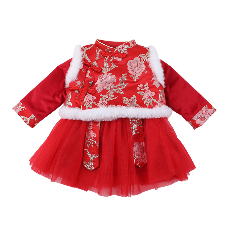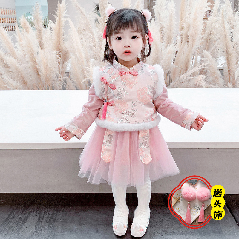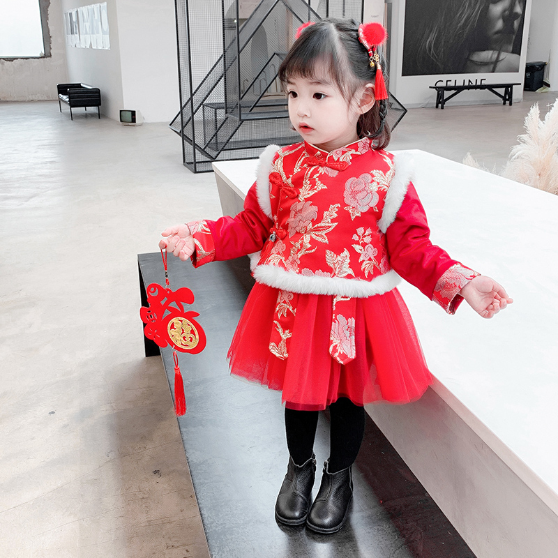 Year-old female baby Beyenserve girl Han clothes Winter dress Children's Tang dress qipao Chinese New Year dress Chinese style clothes in Chinese New Year's clothes