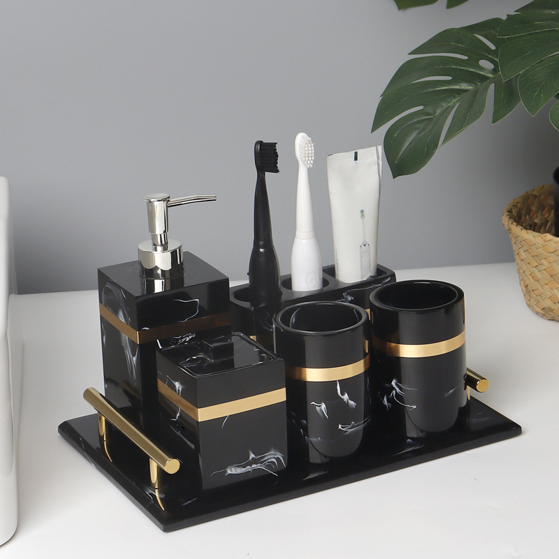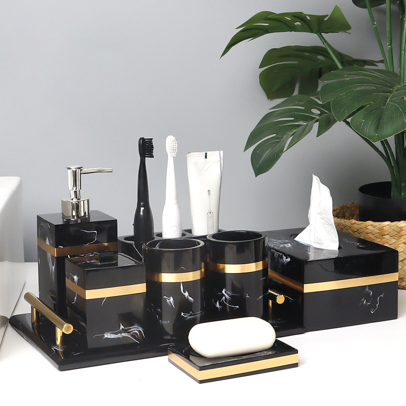 White purple flower color gray silver black taupe brown ink black gold edge mouthwash cup ink black gold edge three-hole toothbrush holder ink black gold edge lotion bottle ink black gold edge cotton swab box ink black gold edge comb box ink