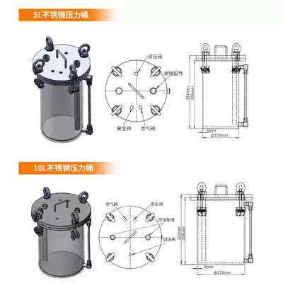 Liaoji pneumatic mixing automatic water storage pressure barrel dispensing lining PTFE PTFE Teflon Teflon Teflon Teflon 5L 10L