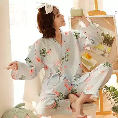 Japanese kimono pajamas women cotton spring and autumn lace cotton double gauze sweet fresh home clothing long sleeve set