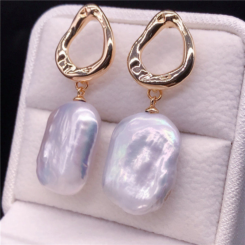 14K Notes Gold Pure Silver Natural Dazzling Baroque Pearl Earrings 15 -19mm Pearl Earrings Method Retro