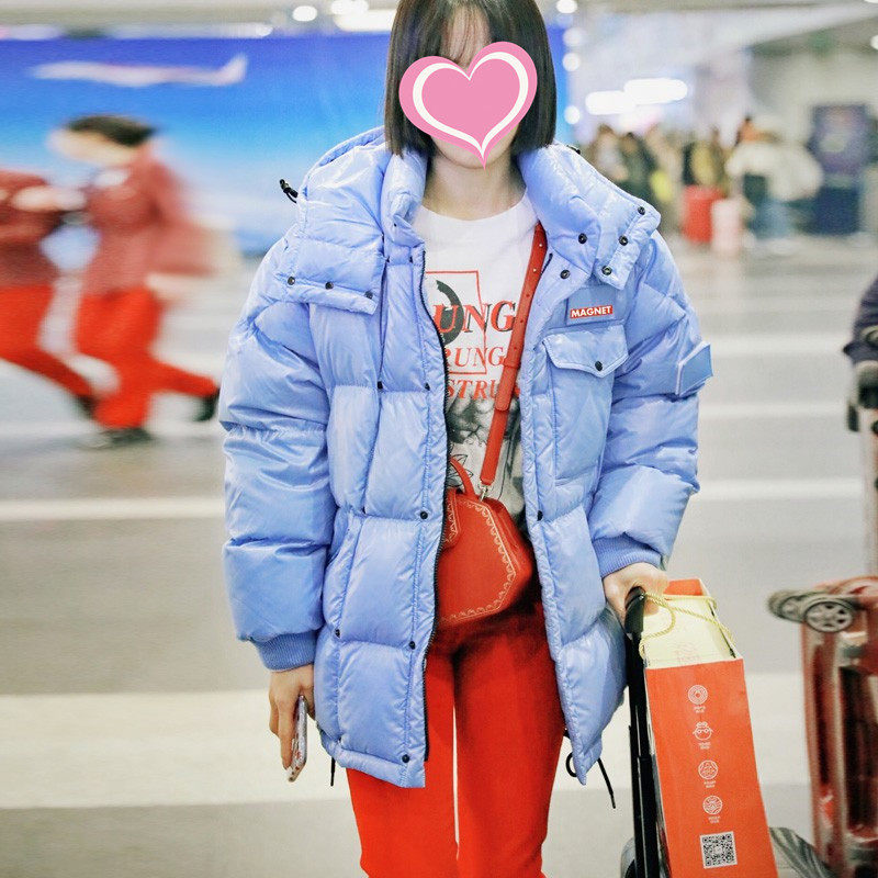 2021 Winter new stars Zhang Tianyi Song Qian Tongan Relaxed Casual Even Cap Thickened Couple Down Jacket Female Coat