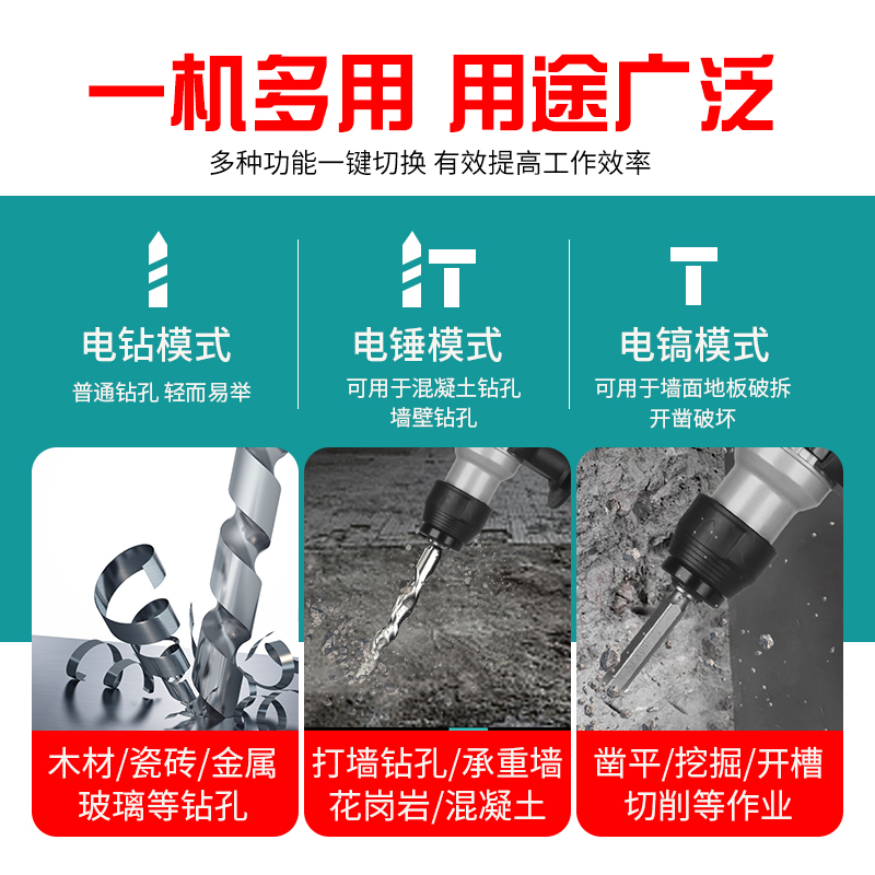 Single function 6601 electric hammer drill bare muscle (no battery) single function 6601 bare muscle converter universal single function 6601 single power 4000 mAh mark fit single function 6601 double electric 4