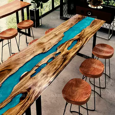 Creative Art Table Epoxy Resin River Solid Wood Splice Tea Bar Desktop