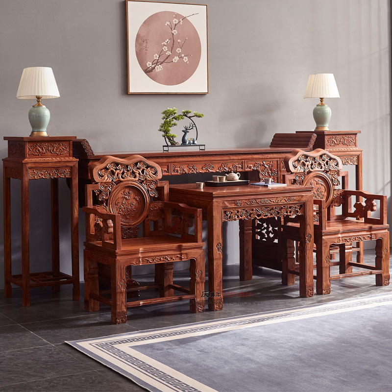 Red Wood Furniture with six sets of hedgehog purple sandalwood for table flowers Pear wood strips case solid wood Eight Immortals Table Lucid Chairs of Lucid Wood