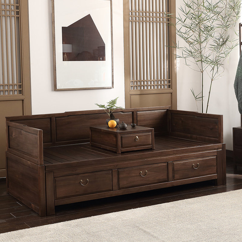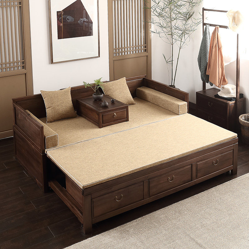 Changi Hu Peach Wood New Chinese Furniture Push-and-pull Style SOFA BED SOFA BED-ROOM SOLID WOOD MODERN SMALL HOUSEHOLD TYPE CUSTOMIZED