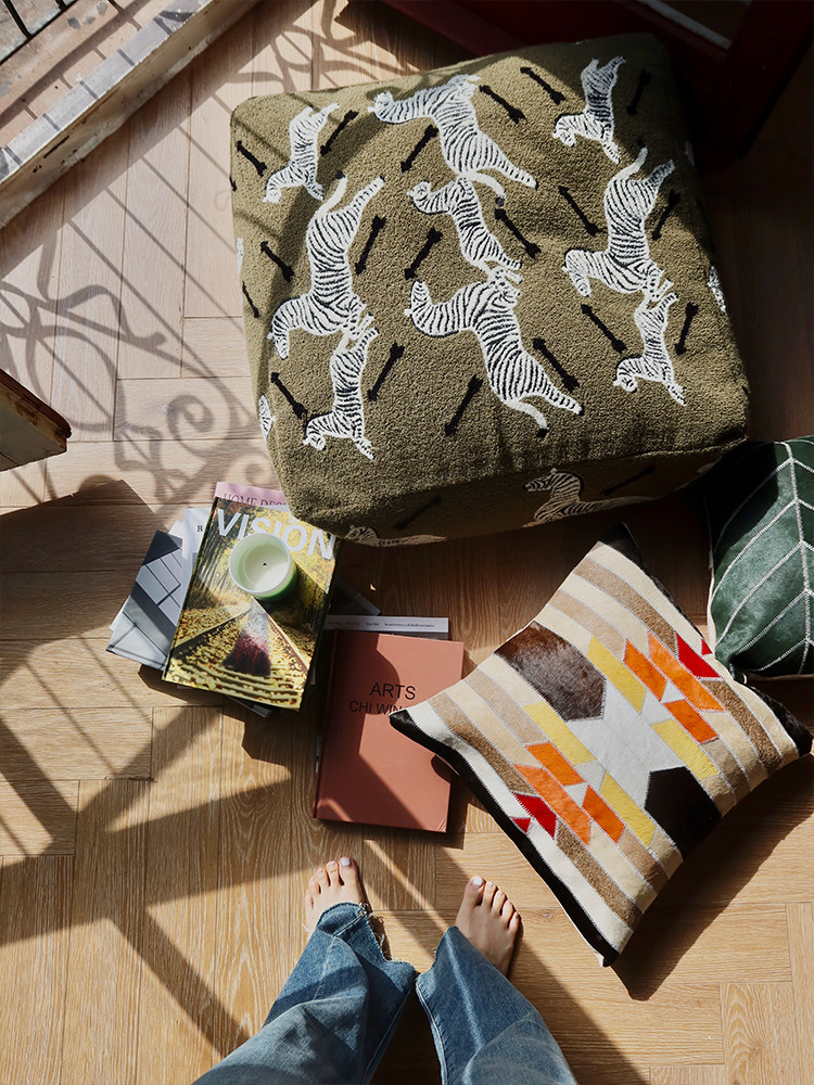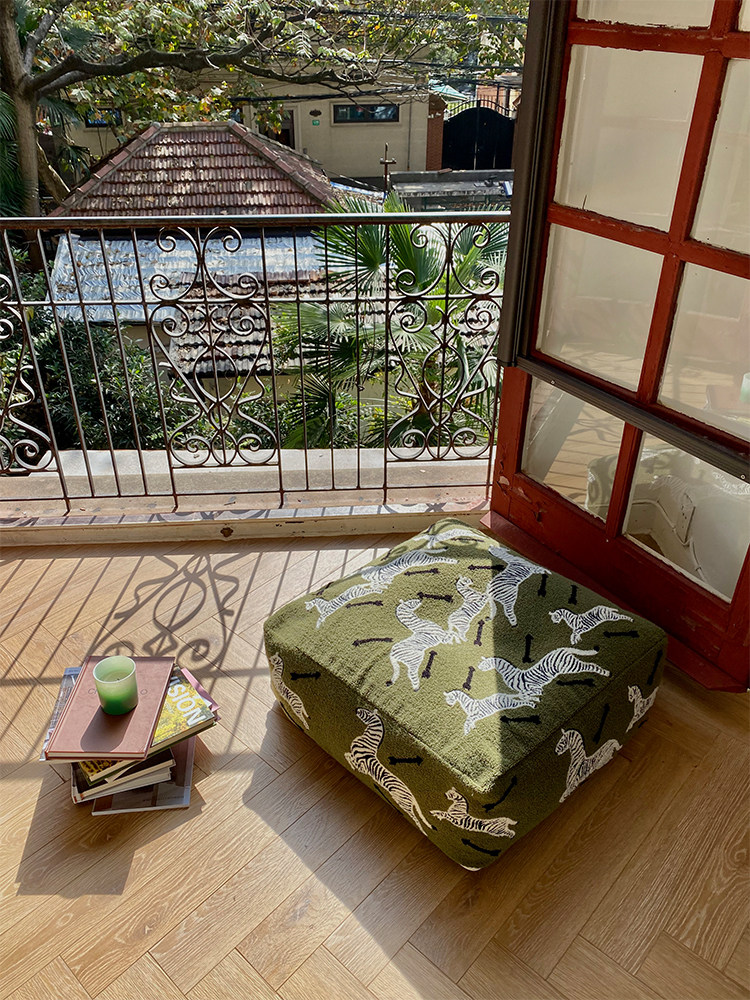 Rhino life Ruona Row middle-aged green zebra embroidery three-dimensional Moroccan sitting pier lazy sofa removable and washable