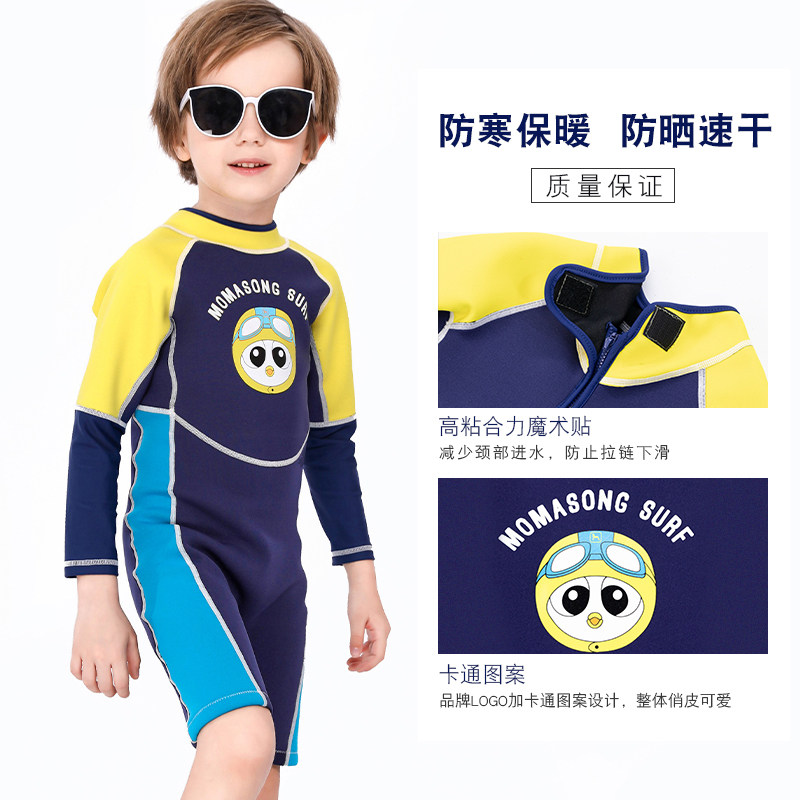 Sea Breeze children's swimsuit Boys and girls cold one-piece warm swimming wetsuit thickened children's long sleeves