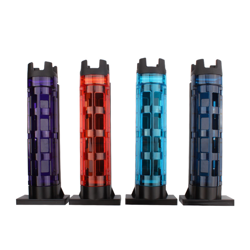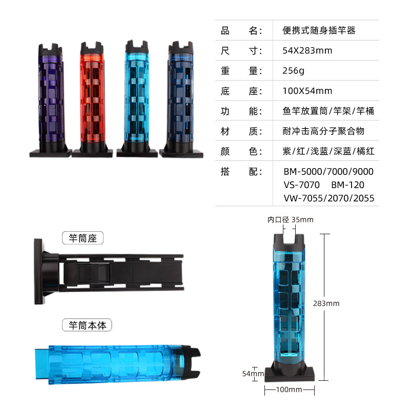 Black, red, dark blue, purple, green, sky blue, hanging bait bucket rack, type B water cup holder, pink, orange, and white bait box