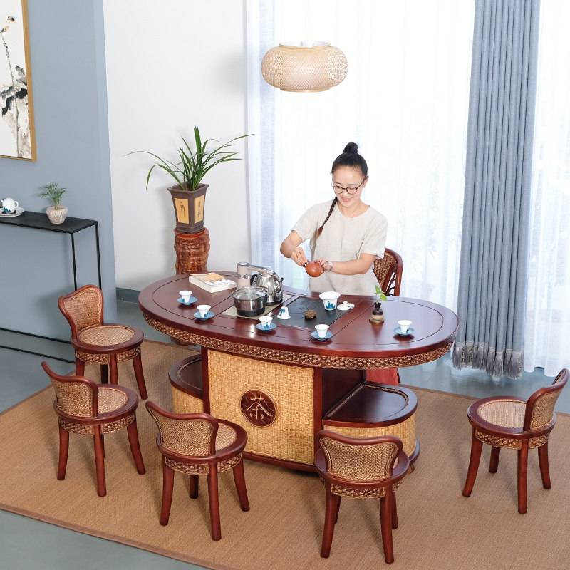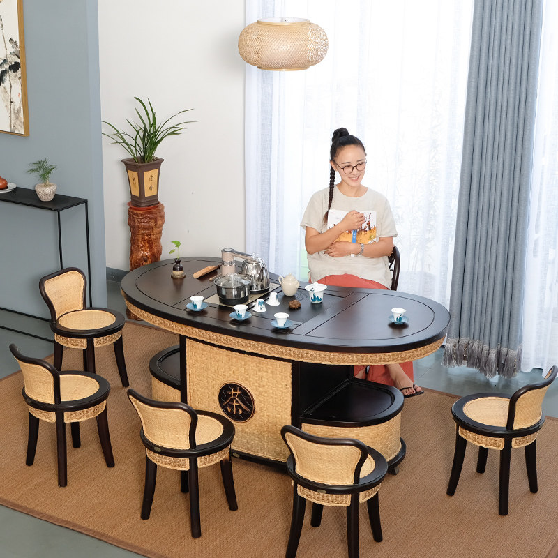 Rattan balcony tea table and chair combination solid wood home small tea table simple modern new Chinese style Zen Kung Fu tea table