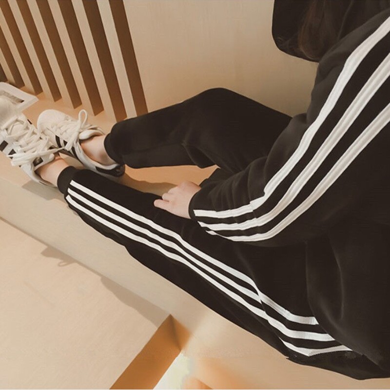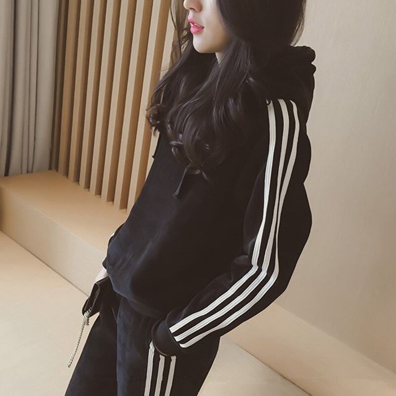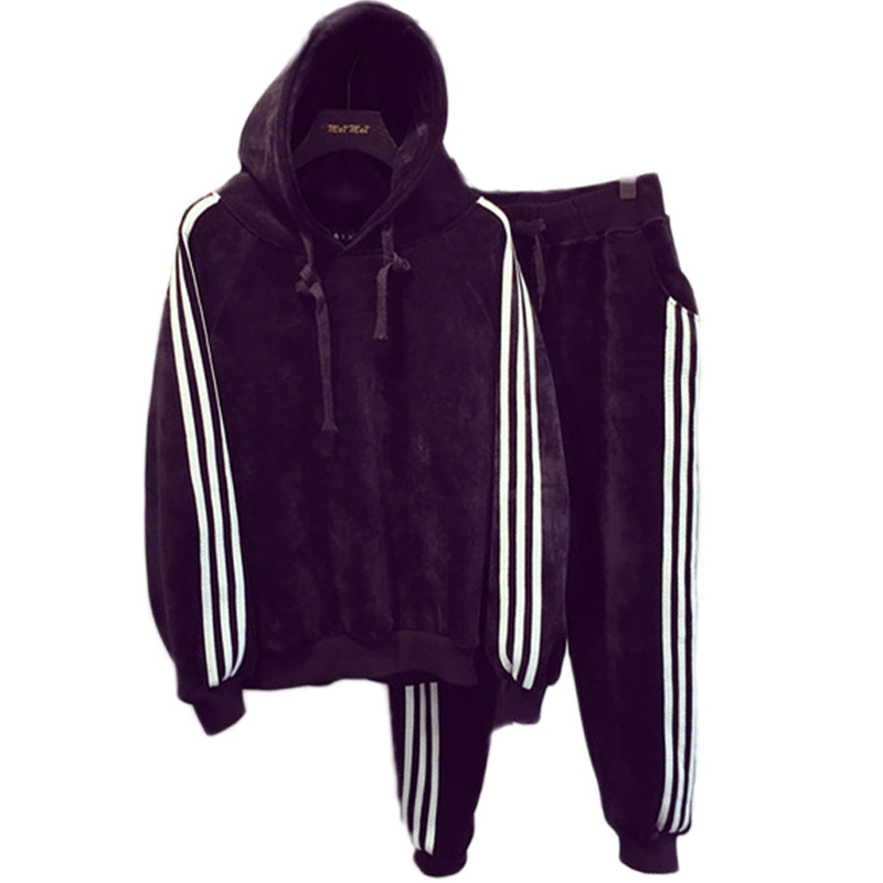 European Standing Gold Velvet Casual Sportswear Suit Woman Korean version loose with large size and velvety with hat sportswear Two sets of damp