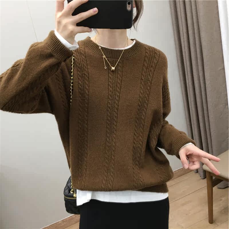 Round-collar inner lap dresses 2022 spring and summer new retro 100 hitch minimalist white T-shirt loose long sleeve sweater blouse