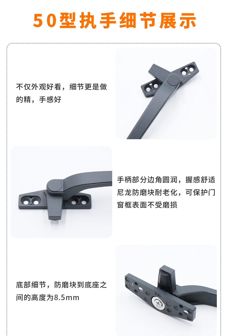 Plastic steel window handle Seven-character handle Outer door and window handle 50 type inner and outer window aluminum alloy window accessory window buckle