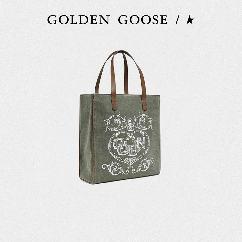 Golden Goose Women's Bag California Bag Heart Print Open Shoulder Hand Tote Bag