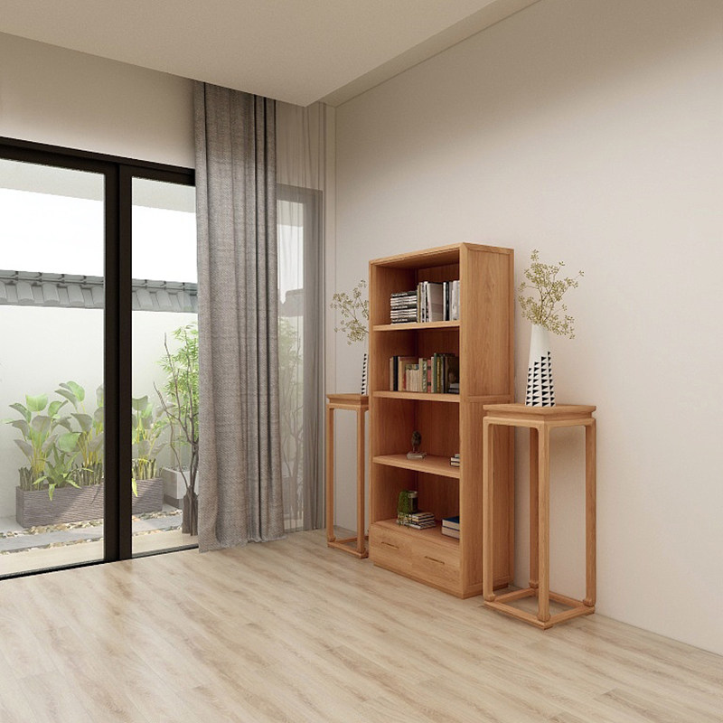 Old Elm Wood Whole bookcase Two floors with drawer with back plate Bookshelf log No lacquered tea cabinet Depth 40 cm