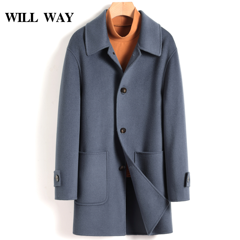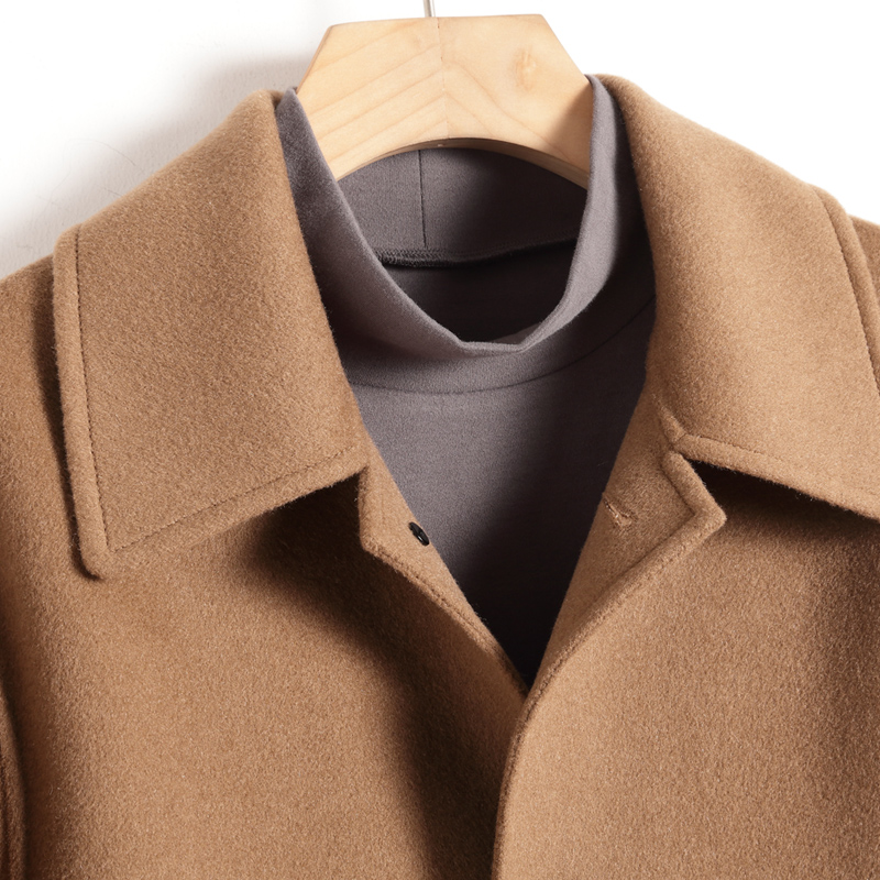 Autumn and winter new business casual wool lapel woolen coat men's medium and long version thickened warm double-sided cashmere coat