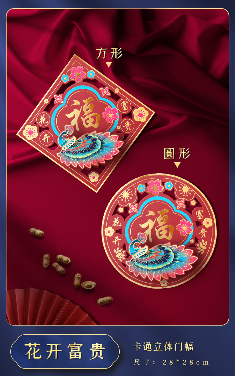 Paper three-dimensional door width-Pisces send blessings Paper three-dimensional door width-Happy New Year Paper three-dimensional door width-Flowers bloom and wealth Paper three-dimensional door width-Fuxing Gaozhao Paper three-dimensional door width-Phoenix Laiyi