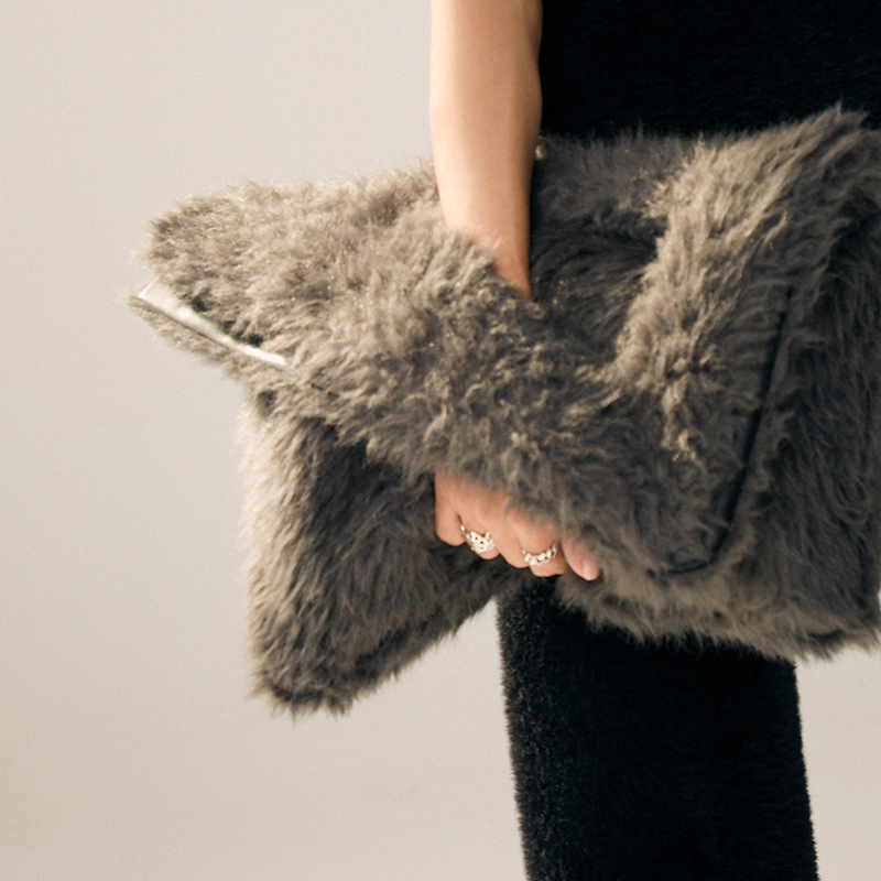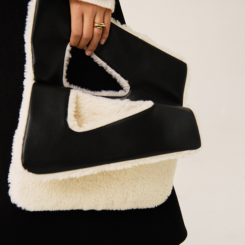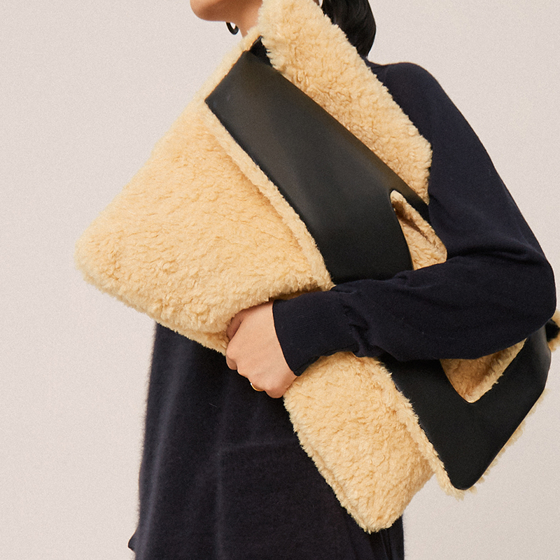 MADEINAM2020 winter WAN energy styling theorist environmentally-friendly leather grass inside and outside double-sided back square bag grey rice yellow white