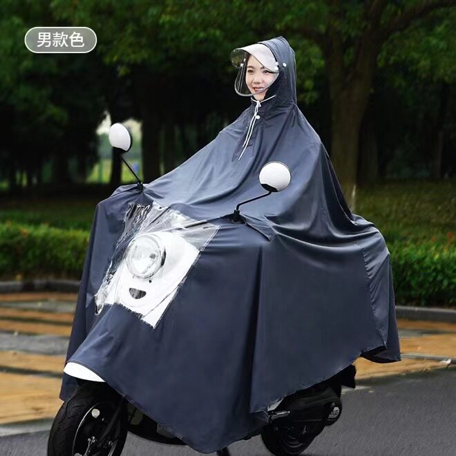 Raincoat single men and women fashion electric car locomotive double brim electric car lengthened, widened and thickened poncho