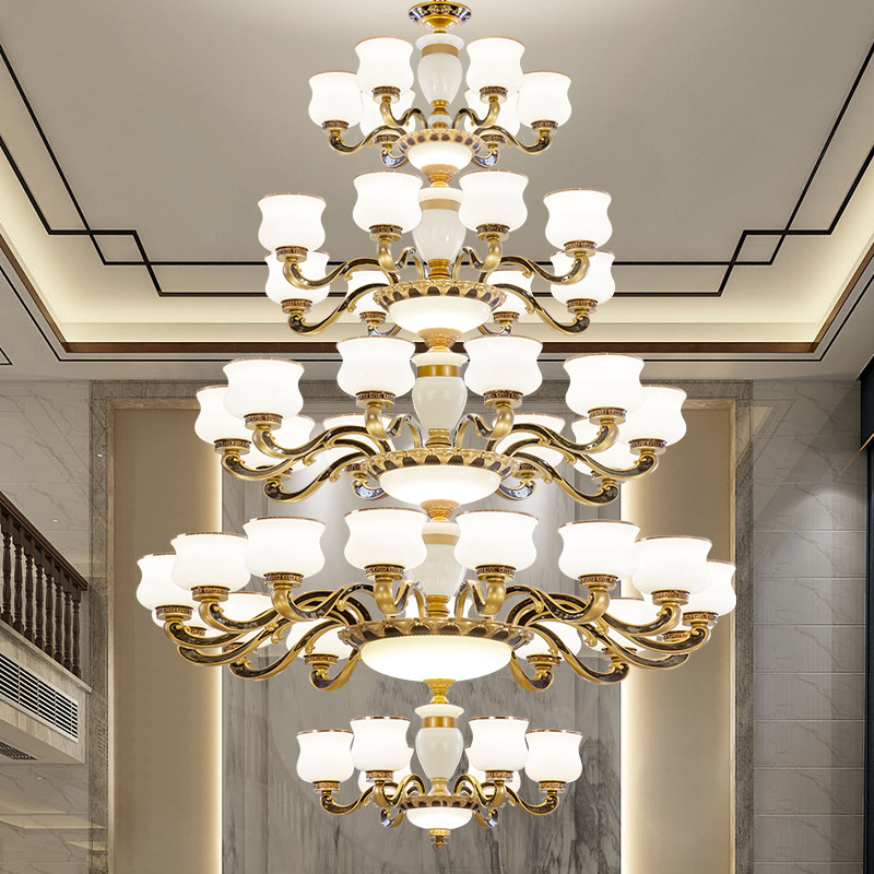Duplex building living room large chandelier building middle building lobby hotel lobby jump-storey three-storey five-storey villa pick empty large chandelier