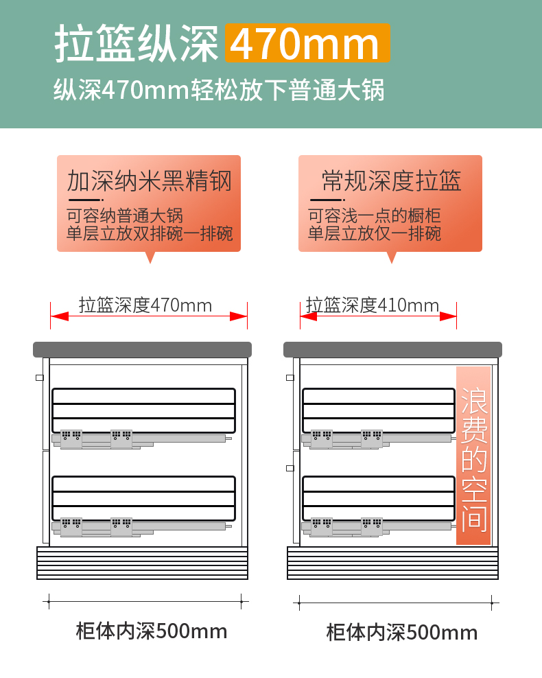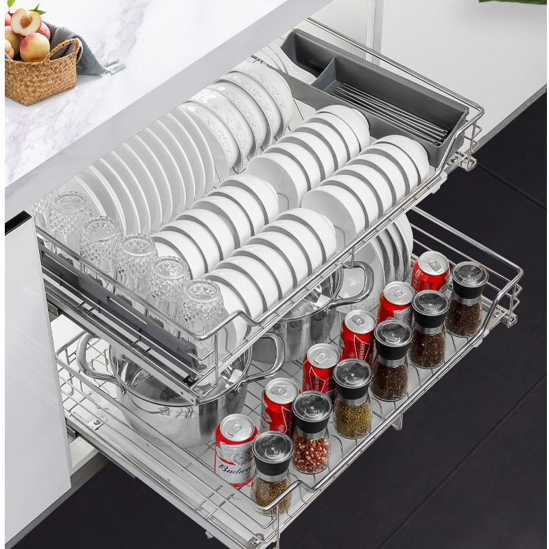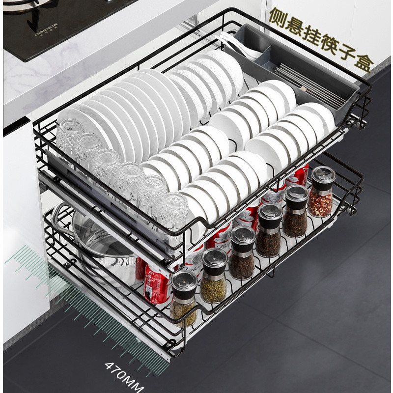 Deepen the 47cm pull basket kitchen integral cupboard double drawer 304 stainless steel buffer damping?A basket of a bowl and a basket of a car.