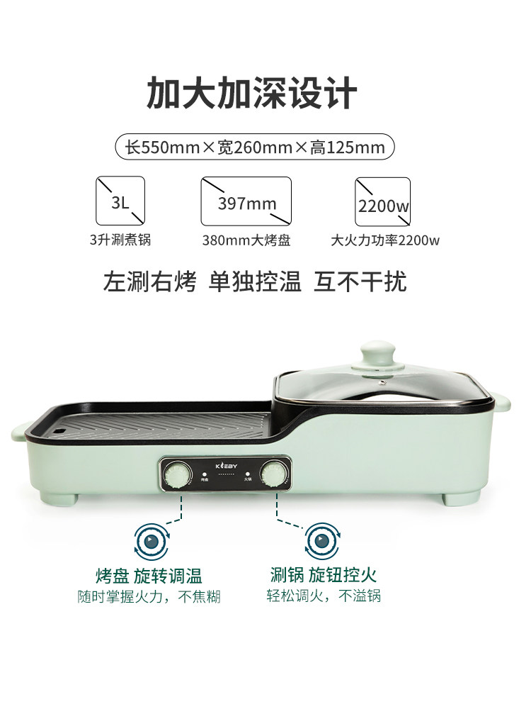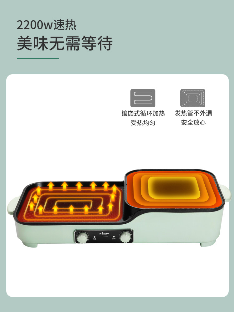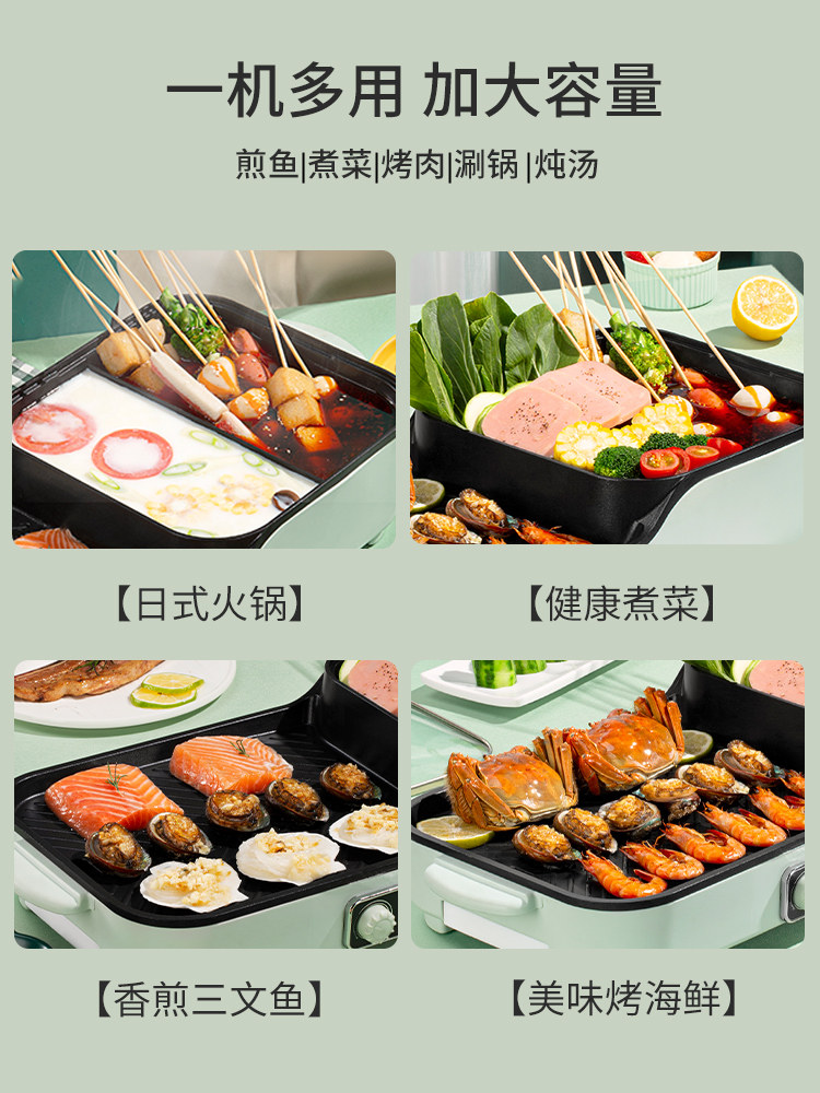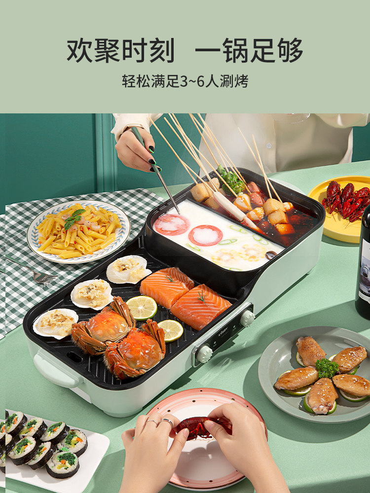 Kelaibi hot pot barbecue all-in-one pot electric baking plate Barbecue plate frying and soldering Household multi-function shabu-shabu oven Electric oven