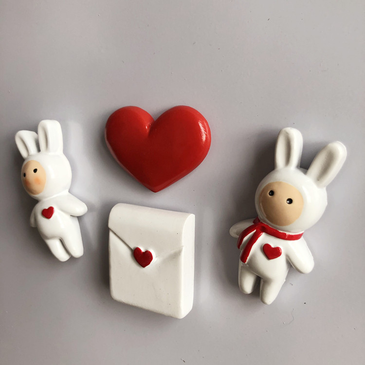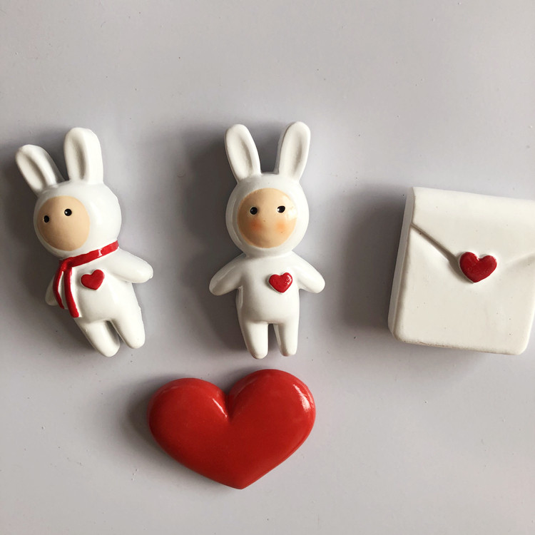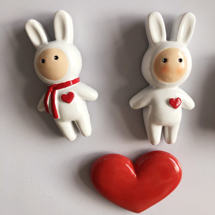 New Products Creativity Cute Long Rabbit Ears 3D Solid Anthony Rabbit Powerful Magnet Cartoon Resin Fridge Sticker
