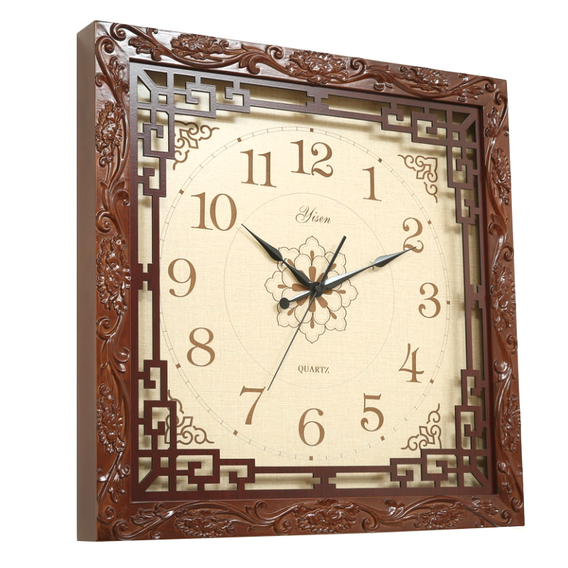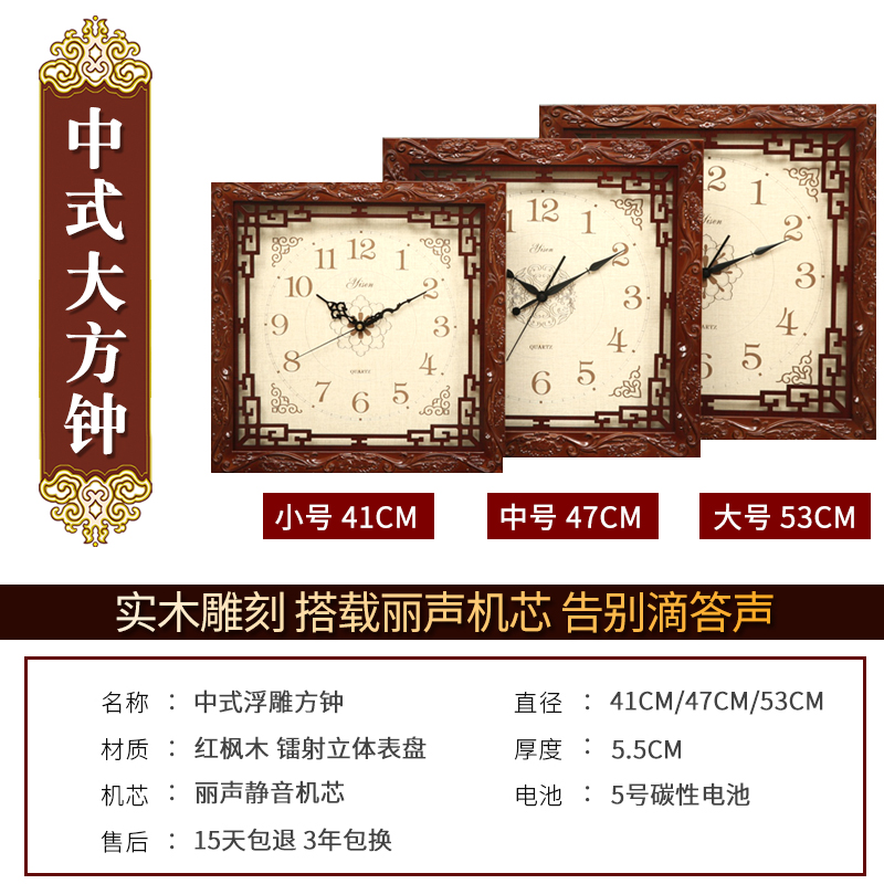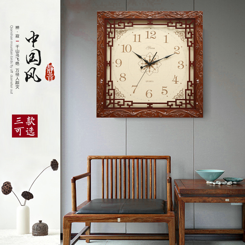 Yi Sen Chinese solid wood wall clock Living room square clock Chinese style meter box clock Large conference room quartz clock