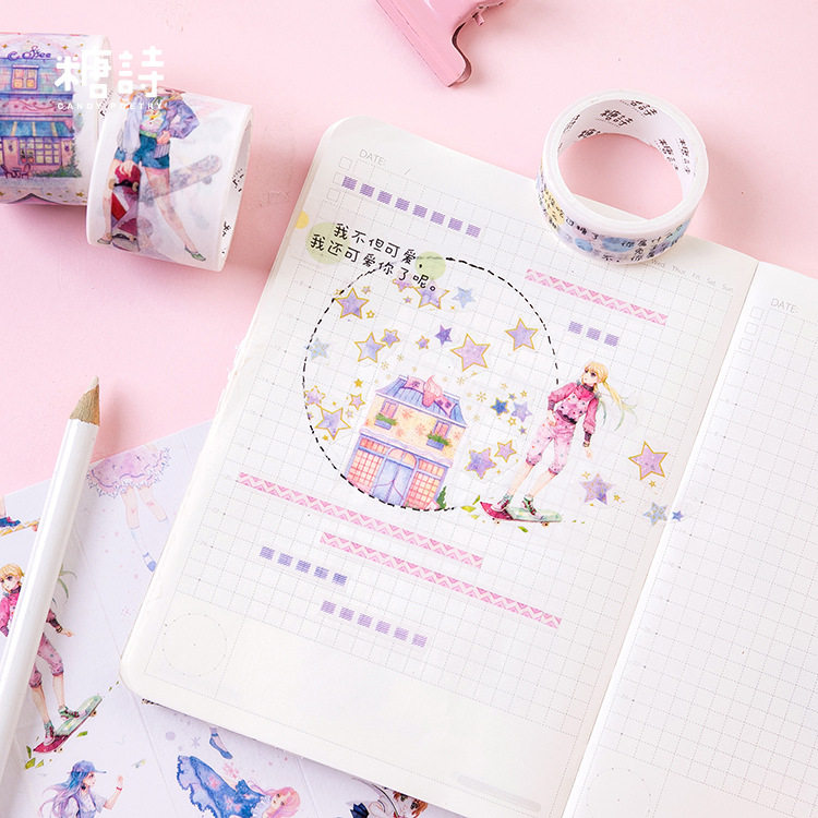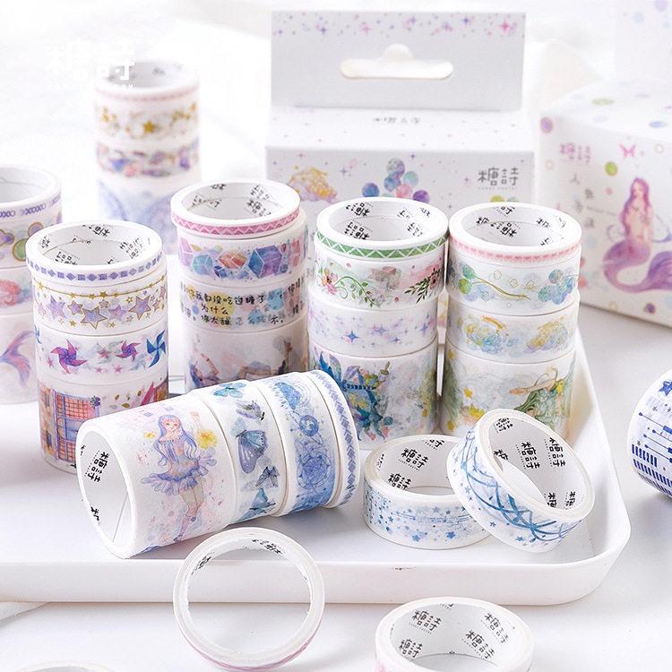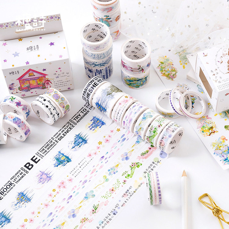Sugar Poetry Original Washi Tape Set Mengxin Pure Age Series Handbook Diary DIY Decorative Stickers 8 Involved
