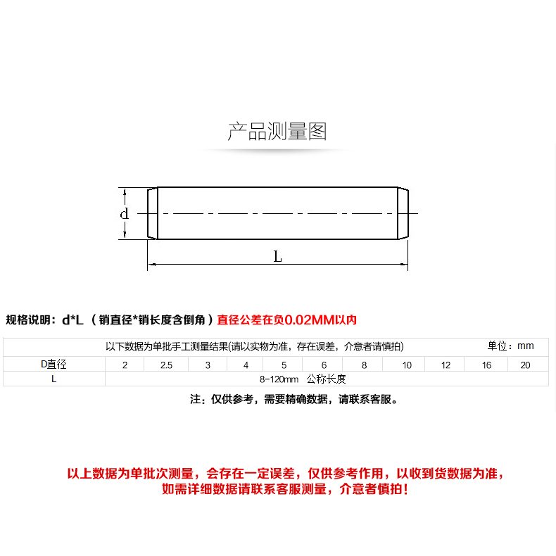 Cylindrical pin 304 stainless steel solid pin axis M5M6M8x25x30x35x40x45x50 55-60