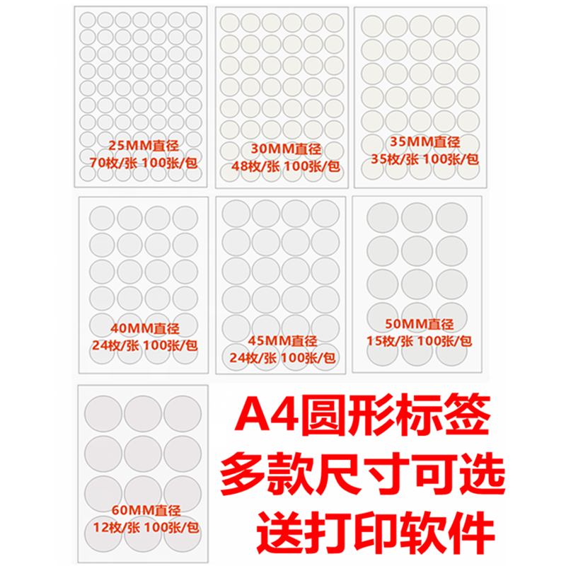 A4 Round Self-adhesive Label Printing Sticker Matte Self-adhesive Copy Paper Label Sticker White Dot Label
