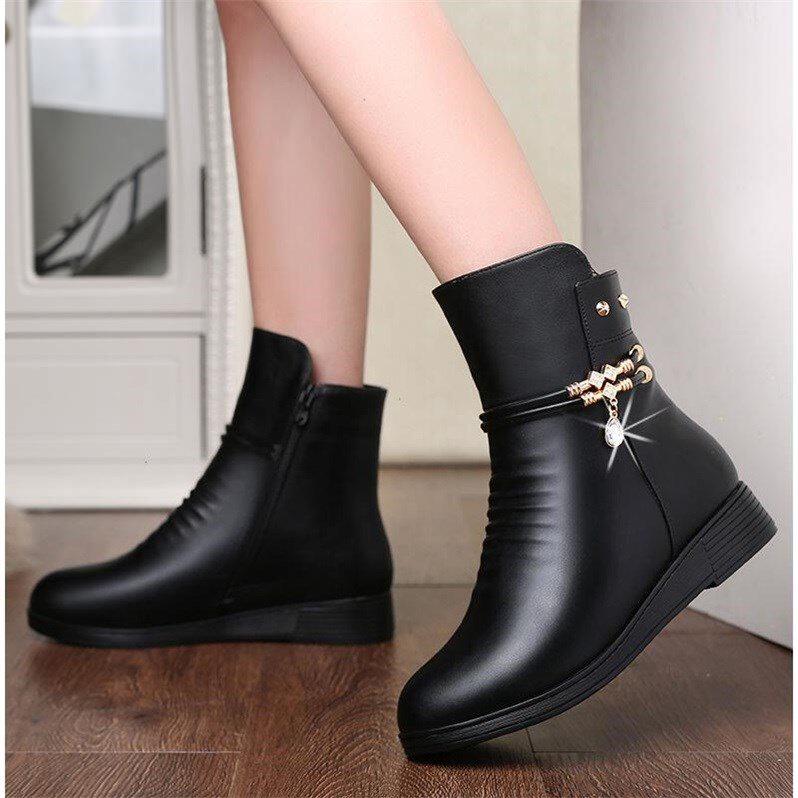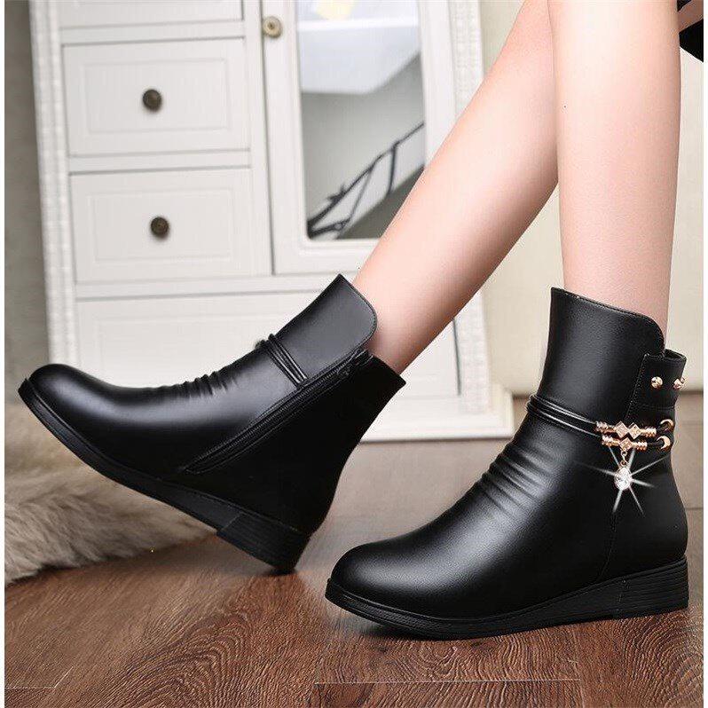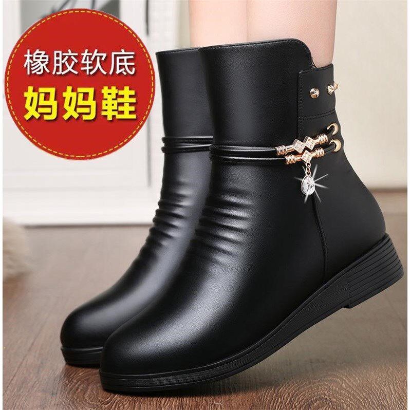 Mom Shoes 2021 Winter Plus Suede Soft Leather Cotton Shoes Woman Warm Non-slip Flat Bottom Middle Aged Leather Shoes Soft Bottom