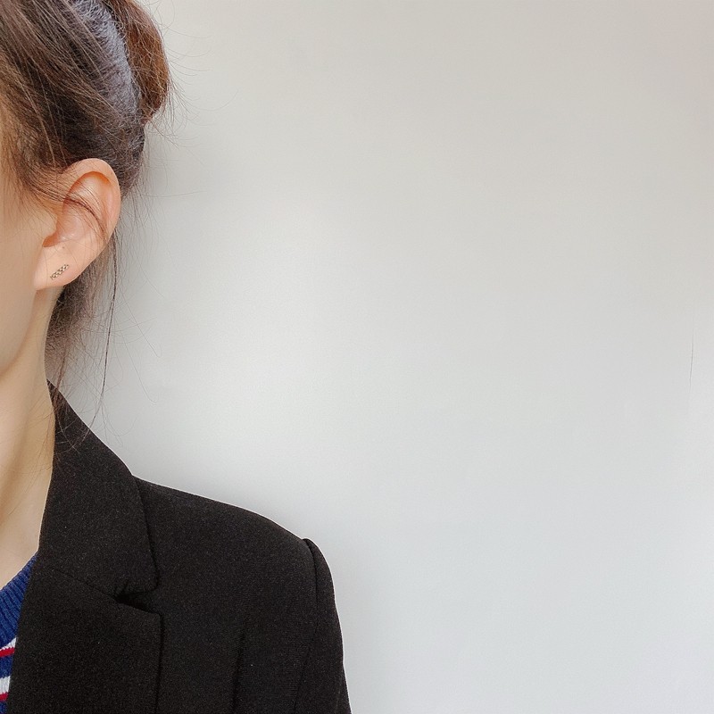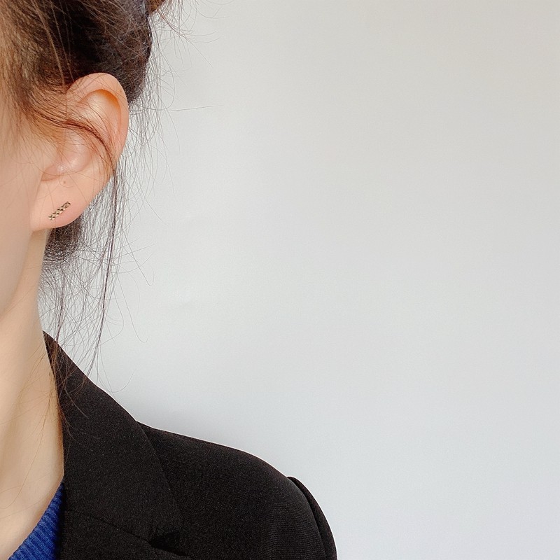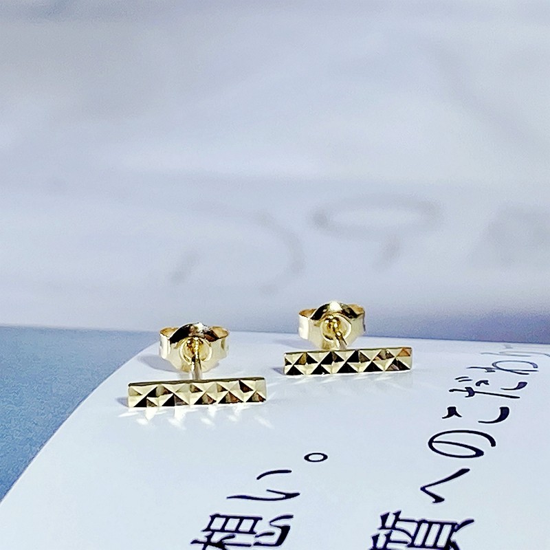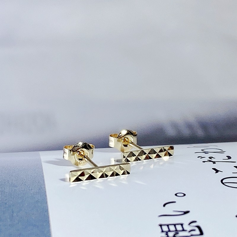 FADOOOJ Japanese Light Luxury Light Jewelry 10k Gold Rhombus Pattern Stick Mini Ear Stud Ear Bone Stud Earrings - Taobao
