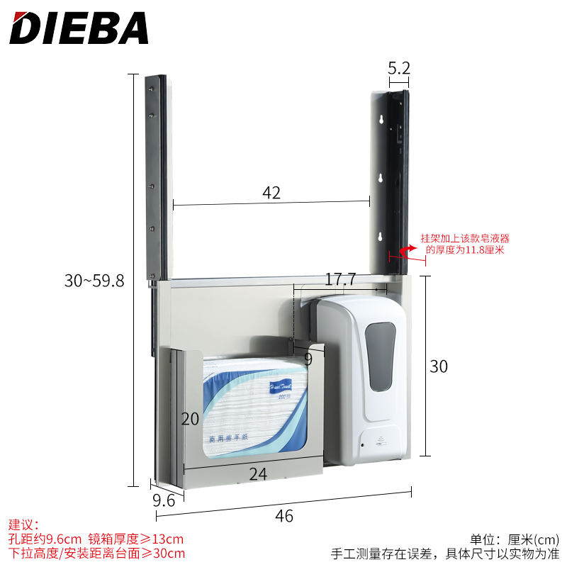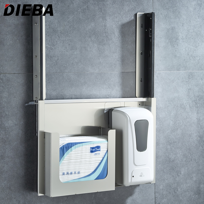 DIEBA 304 Stainless Steel Mirror Rear Toilet Paper Rack Inductive Soap Dispenser Rack Two-in-one Multifunction Concealed