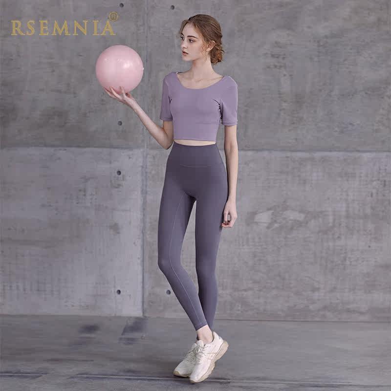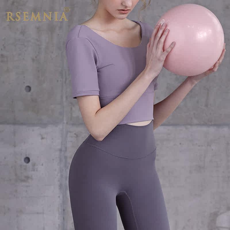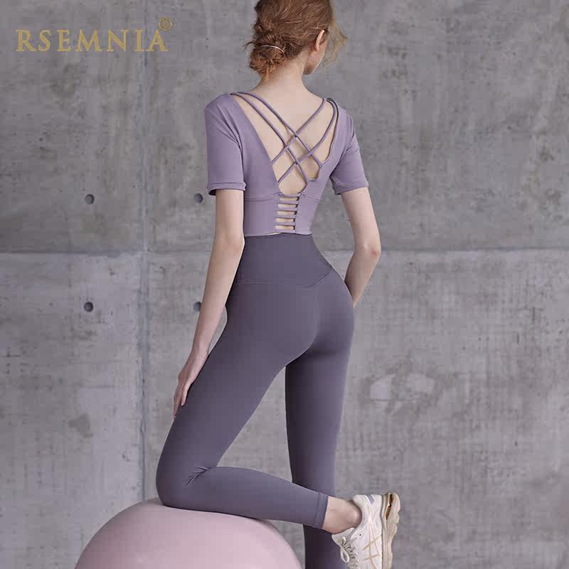 Rsemnia Yoga Suit Women's Slim Fit Back Short Sleeve Running Sportswear Fashion Professional High-end Fitness Suit