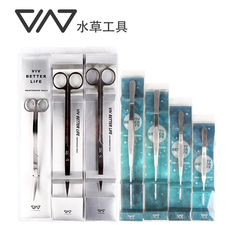 VIV Water Grass Rigging Tool Stainless Steel Tweezers Scissors Straight Cut Wave Cut Straight Bend Tweezers Sharp Mouth Tweezers Water Grass Trim