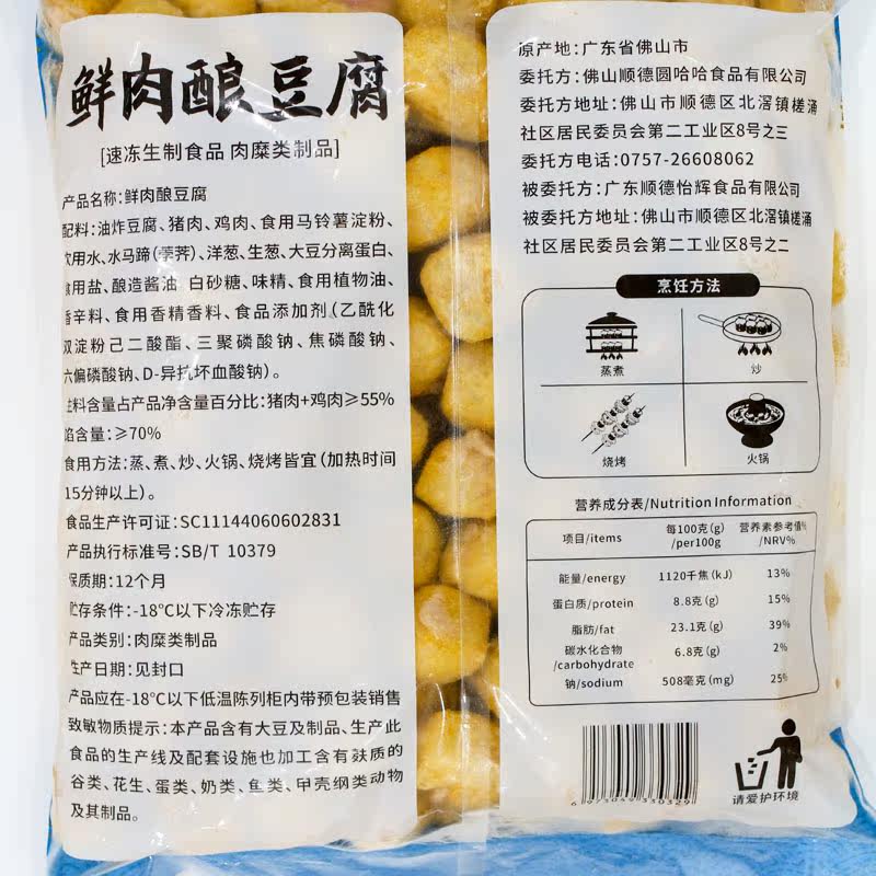 Round haha chives fresh meat stuffed tofu soaked fried Cantonese Hakka cuisine commercial canteen fast food ingredients 5 pounds 150 pieces