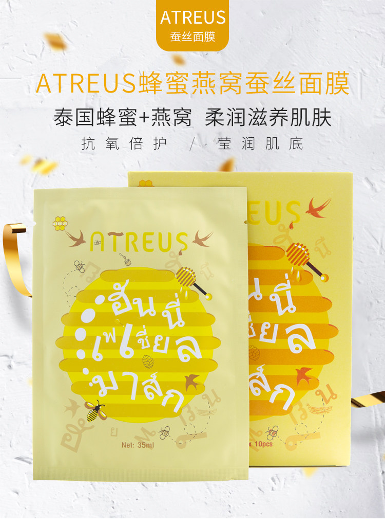 Thai ATREUS Bird's Nest Honey Silk Mask Hydrating Moisturizing Repair Soothing A Shrinks Pores 10 Tablets T