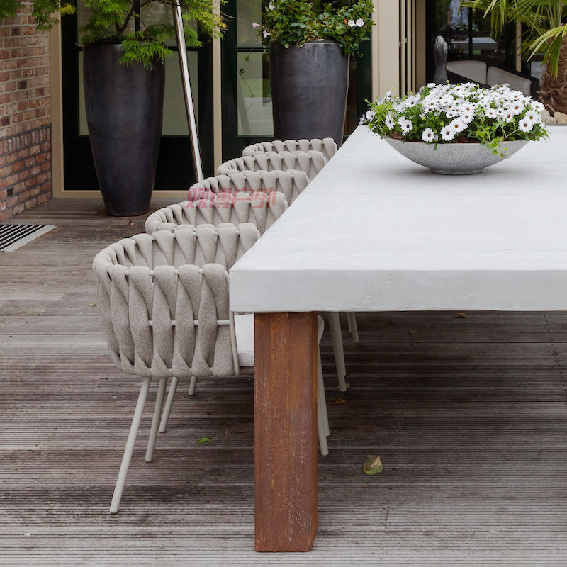 Nordic outdoor rope table and chairs villa courtyard garden outdoor rattan chair terrace waterproof slate marble dining table and chairs