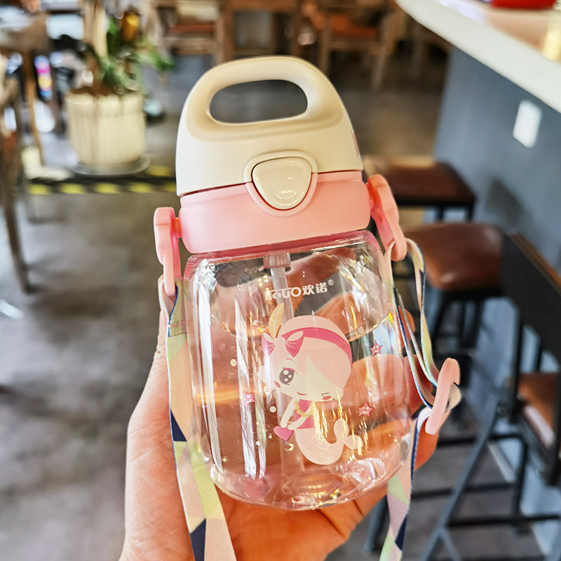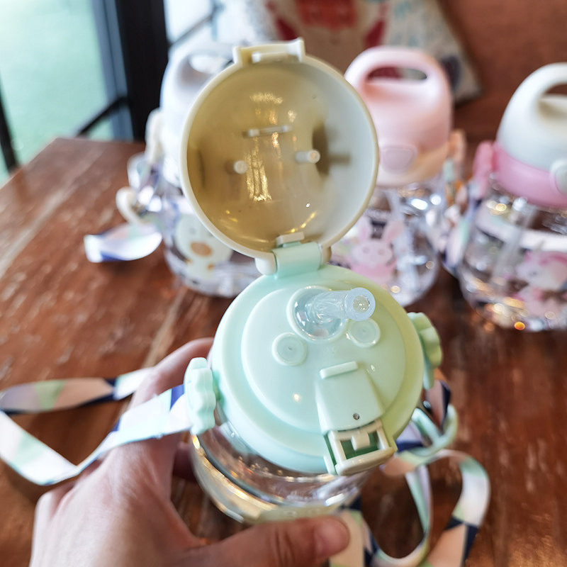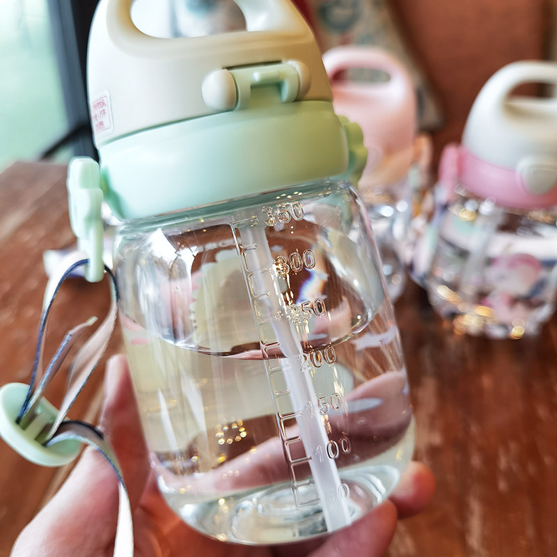 Children's baby holding a baby bag with a straw water cup cute small forest girl students go out portable plastic water bottle