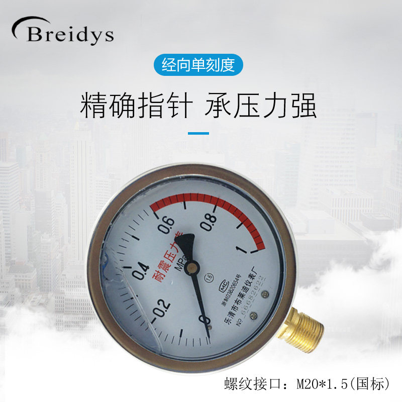 Can pass inspection pressure gauge YN100 is installed stainless steel shock-resistant pressure gauge measuring water pressure air pressure thread m20 generation pass inspection