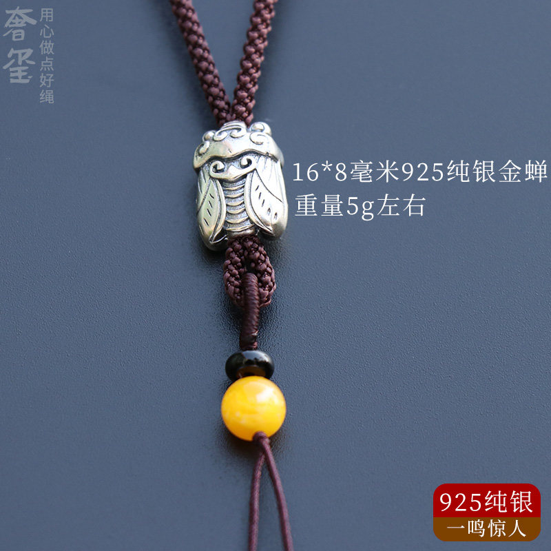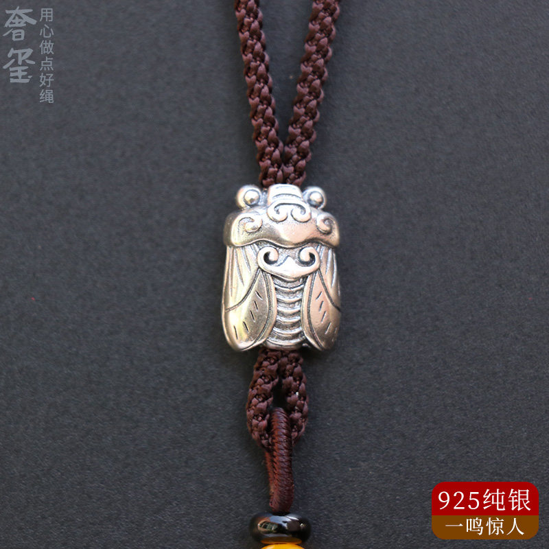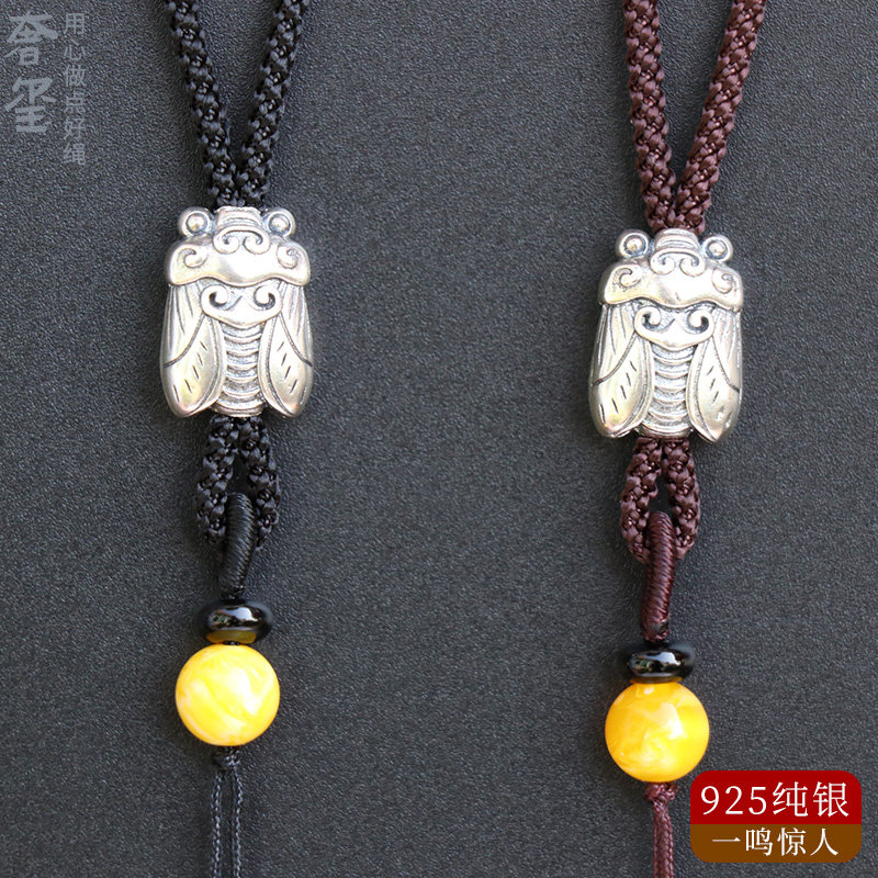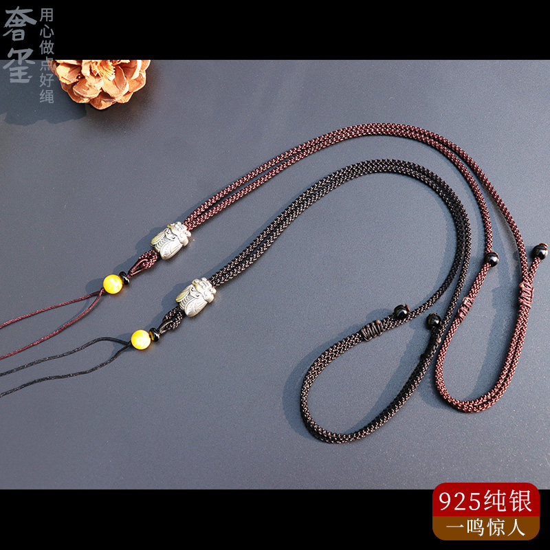 Pixiu pendant lanyard women's high-end hanging neck sterling silver gold men's hand-woven jade jade pendant jade thick rope