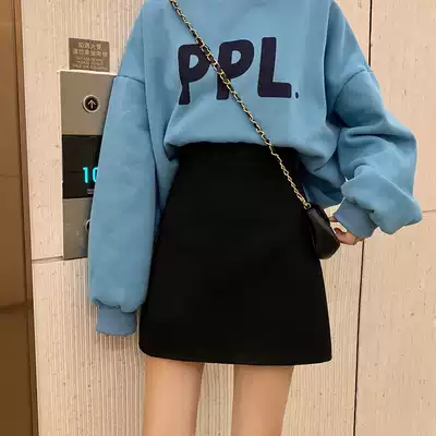 Black skirt women's winter with sweater short skirt winter thickened a-line skirt autumn and winter 2020 new outer wear