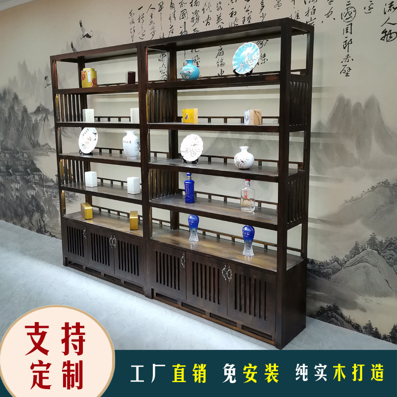 Tea cabinet retro solid wood display rack antique display cabinet Jade shelf storage products cabinet tea display cabinet
