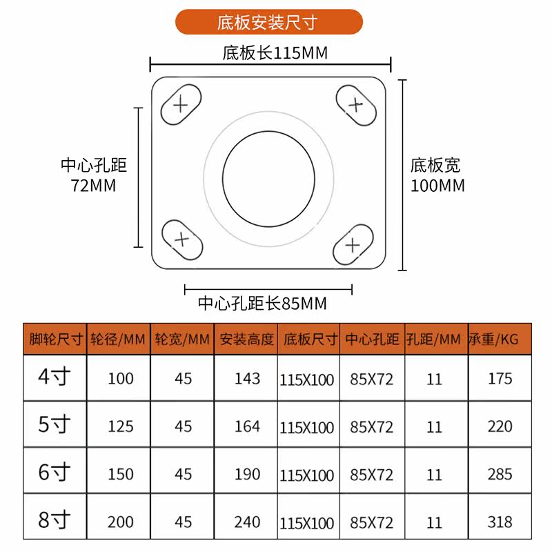 4-inch directional wheel 4-inch 10-inch wheel 4-inch brake wheel 5-inch directional wheel 5-inch 10-inch brake wheel 6-inch steering wheel 6-inch 10-inch brake wheel 6-inch 10-inch wheel