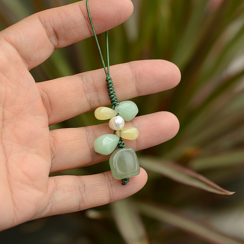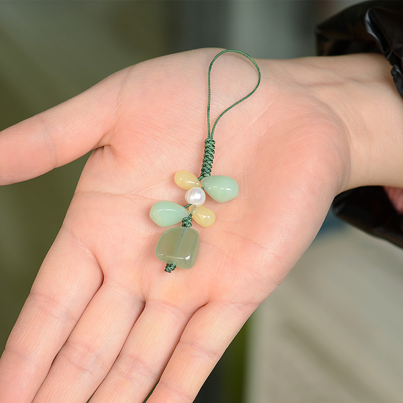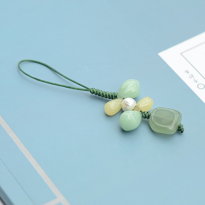 Antique Cell Phone Short Key Lanyard Carry-Ons Unisex Glazed Leaf Pearl Cell Phone Lanyard Hanging Parts Anti-lost Hanging Jewelry