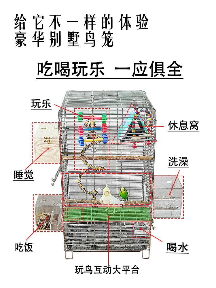 Parrot Cage Large Luxury Parrot Bird Cage Villa Large Stainless Steel Breeding Xuanfeng Myna Special Bird Cage
