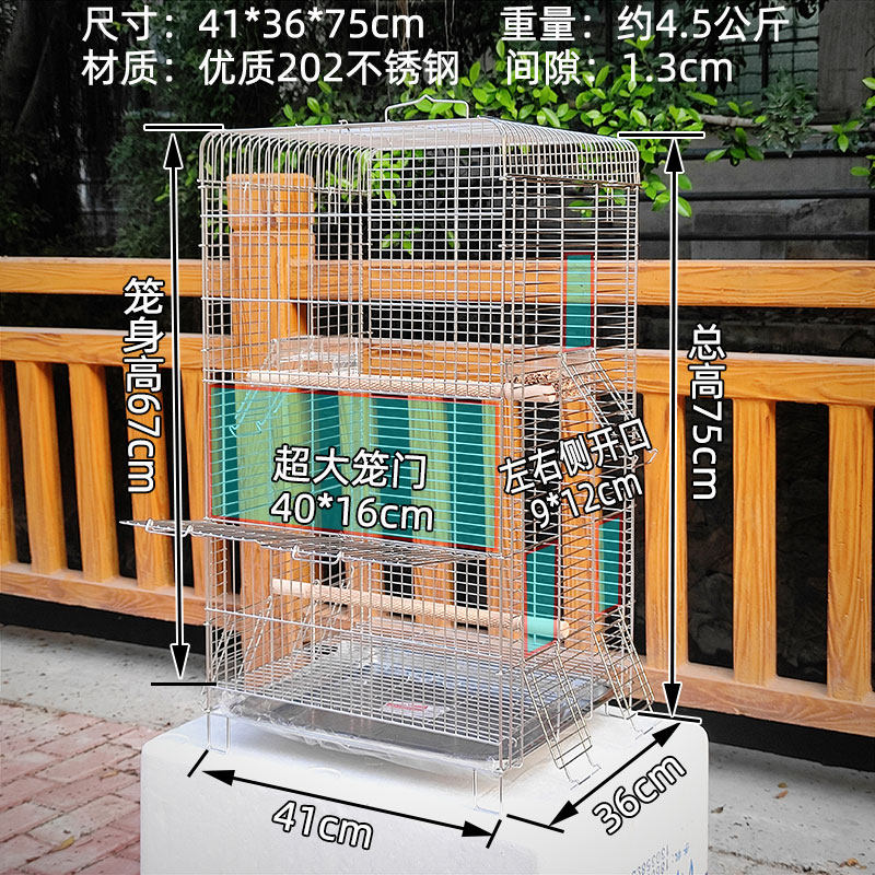 Luxury home stainless steel single cage Set 1 (single cage + bath + food box) Package 2 (single cage + cotton nest + toy) Package 3 (single cage + bath anti-flinging box + nest Toy + breeding box) Double zipper shroud (just shrouded)