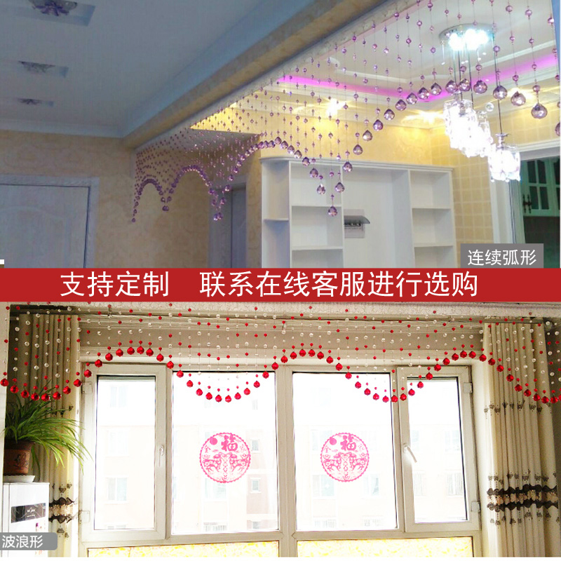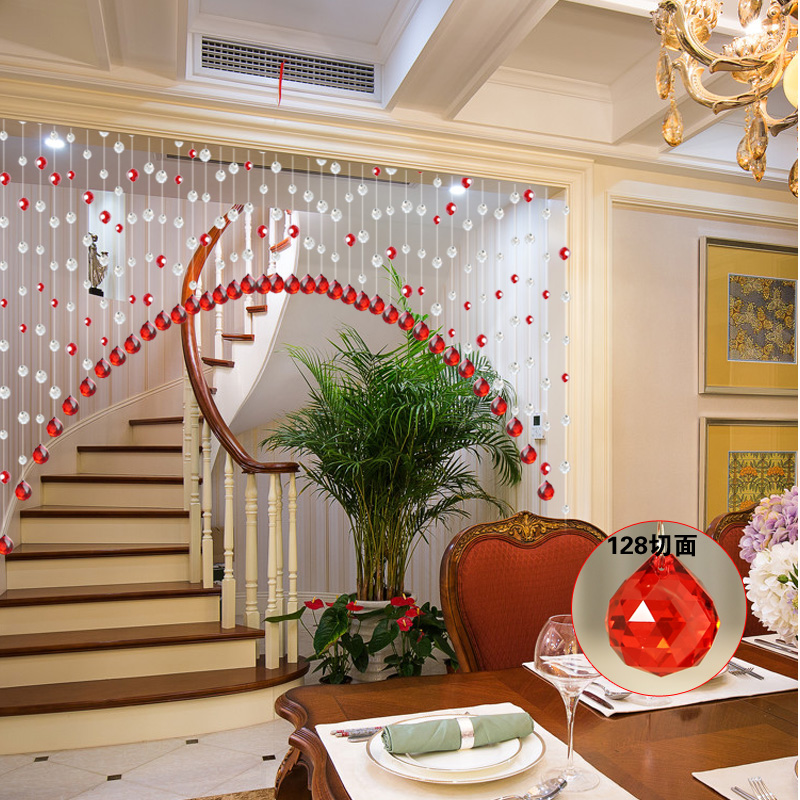 Red Wedding crystal Pearl Curtain Bedroom Balcony Living-room compartment Decorative Hanging Curtain Free of perforated nets Red Pearl Curtains Home